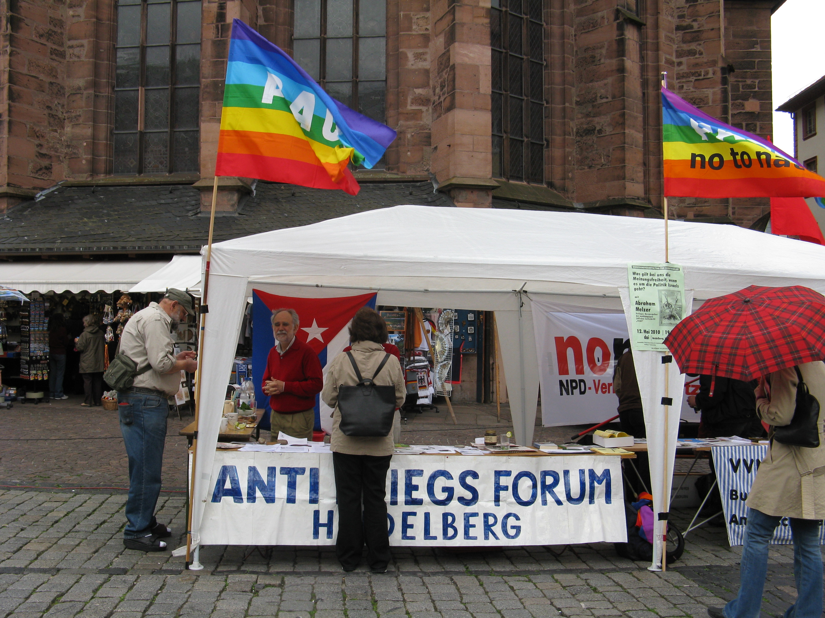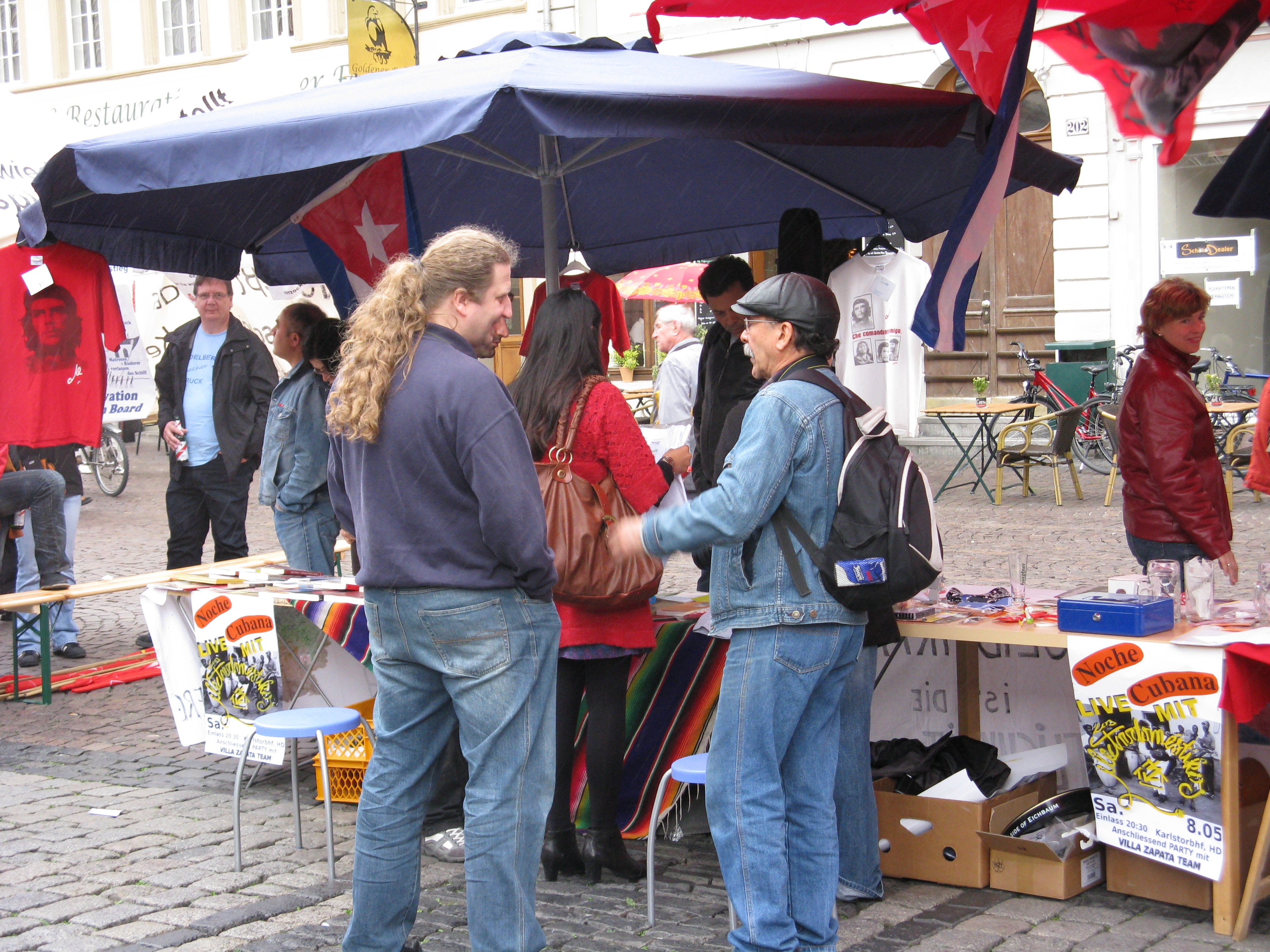 Ein buntes Bild bot sich den ankommenden Demonstranten, aber auch den zahlreichen Touristen die in Heidelberg unterwegs waren und zeitweilig bei uns Rast machten. Meistens wollten sie zwar nur günstig zu essen und trinken, aber