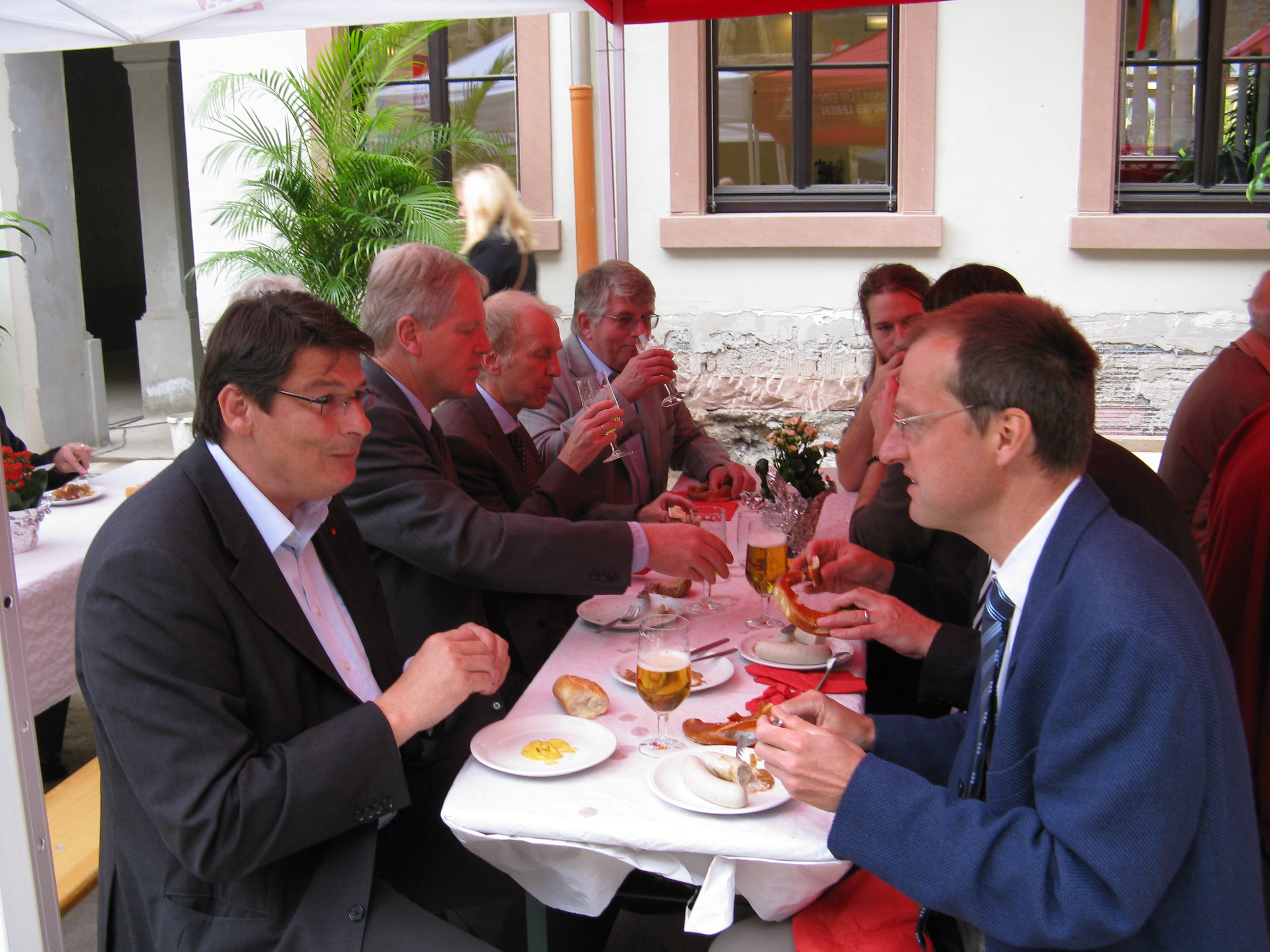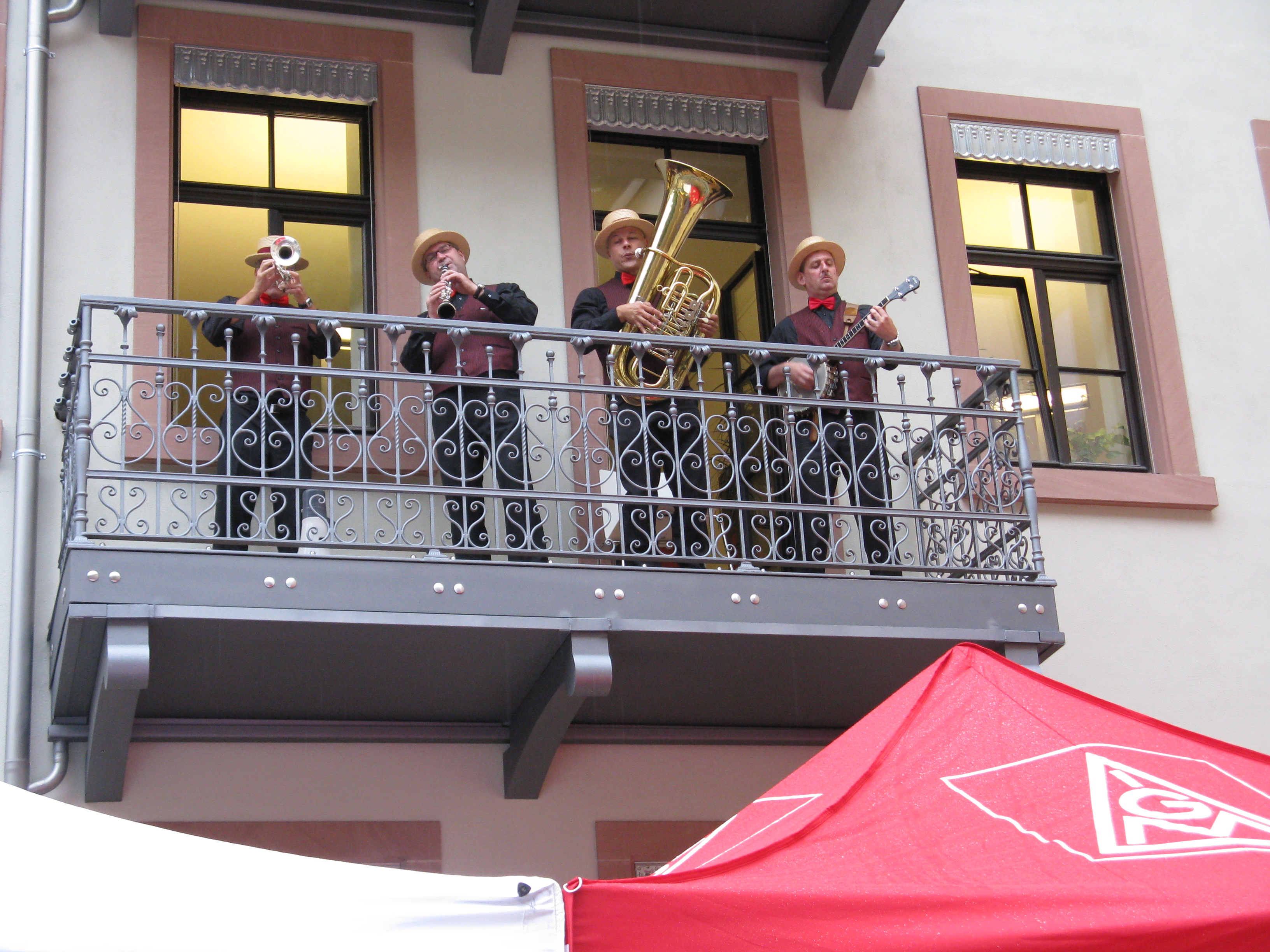 Schließlich gab er den Startschuß zum Festakt und zur Besichtigungstour durch die Räumlichkeiten. Da der Wettergott ein Einsehen hatte, konnte noch einige Stunden unter musikalischer Begleitung der Red Hot Dixi Devils gefeiert, diskutiert und "Networking" betrieben werden.