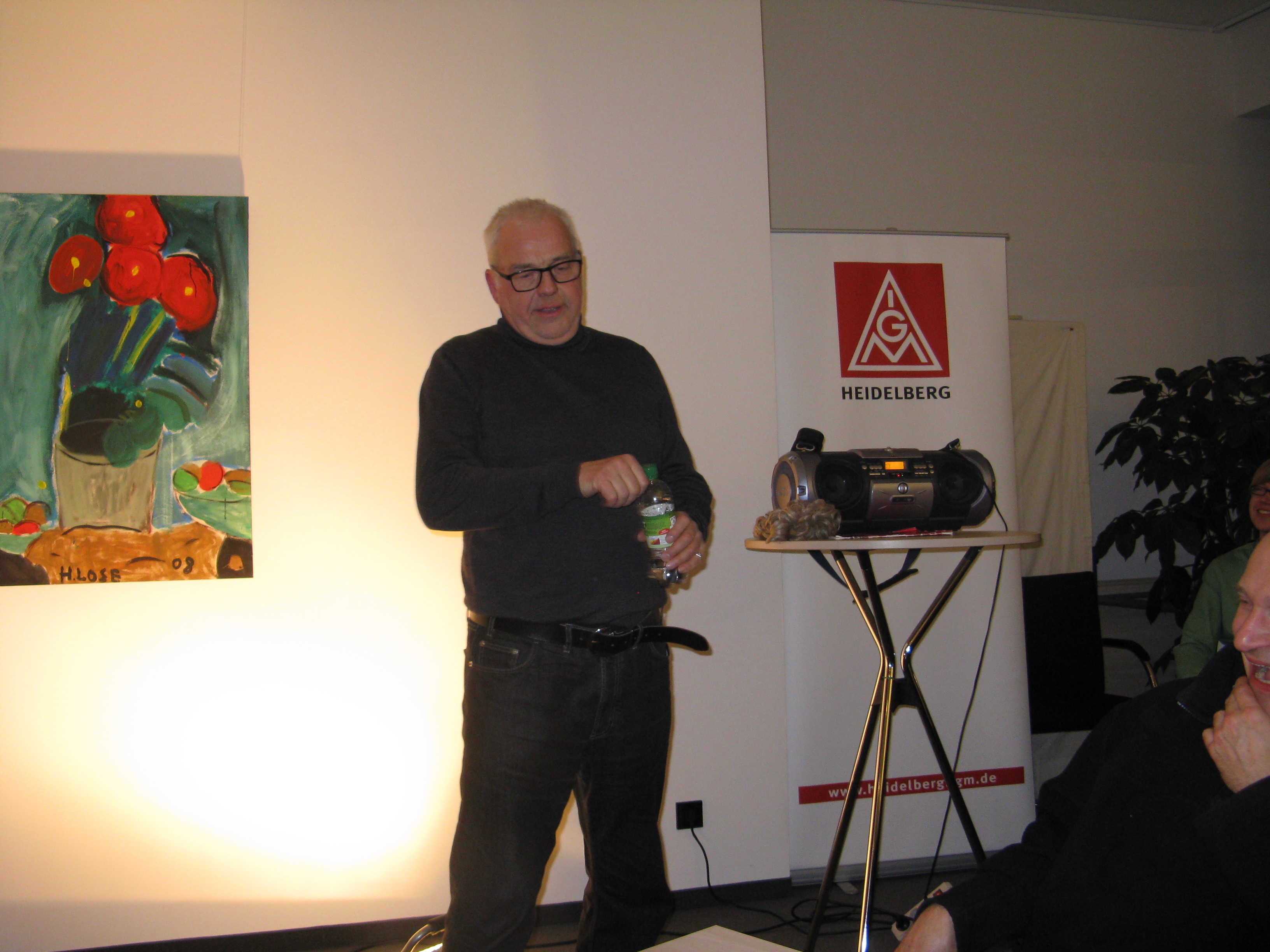 Zunächst begrüßte Mirko Geiger die Anwesenden und stellte die Konzeption der Reihe "Verwaltungsstellenabend" vor. Mit kulturellen und gesellschaftspolitisch relevanten Beiträgen wolle man eine neue Tradition einer