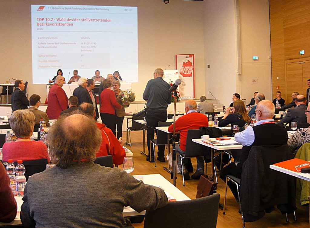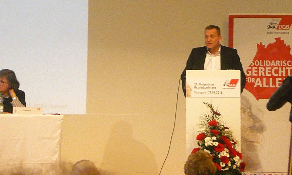 Auf der DGB-Bezirkskonferenz in Stuttgart wurde Martin Kunzmann für weitere 4 Jahre in seinem Amt als DGB-Bezirksvorsitzender bestätigt. Dass er in seiner ersten Amtsperiode alles richtig gemacht hat, beweist das Wahlergebnis