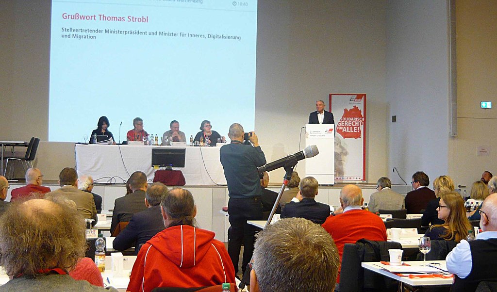 Martin Kunzmann forderte die Landesregierung - vertreten durch Innenminister Thomas Strobl - auf, sich für gute Arbeit, mehr Tarifbindung und eine stärkere Mitbestimmung einzusetzen: